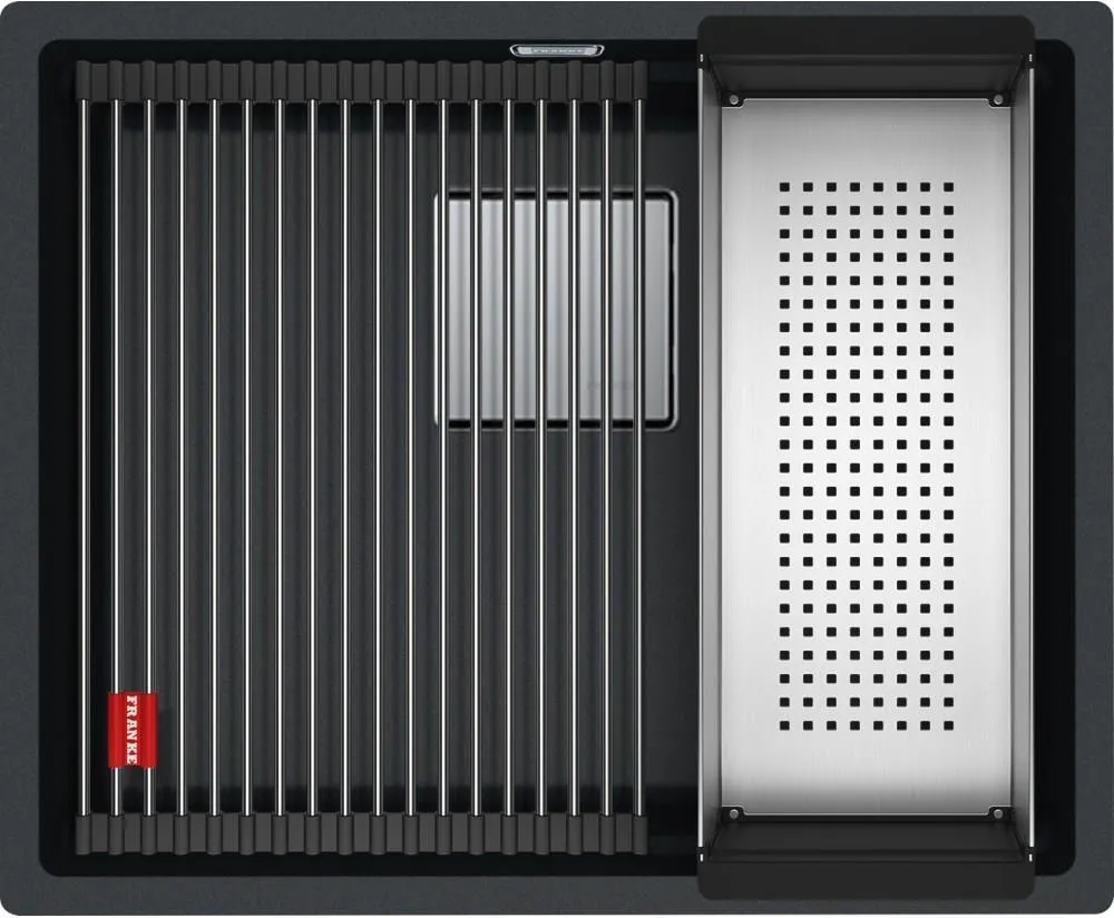 Zlewozmywak Prostokątny 55,3 cm / 43,3 cm producenta Franke. Ilość komór: 1 komorowe, materiał: Granitowe, montaż: Podwieszane. Informacje dodatkowe: Akcesoria w zestawie