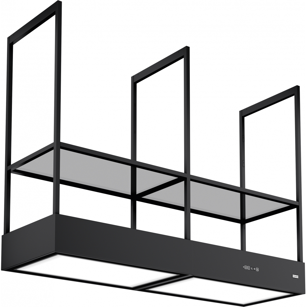 Mythos T-Shelf Evolution to elegancka kombinacja okapu wyspowego i lampy, która wprowadza do kuchni wyjątkowy klimat i styl. Dzięki dwóm panelom świetlnym o szerokości 80 cm, zapewnia idealne oświetlenie, a dotykowe sterowanie i pilot umożliwiają łatwą obsługę. Eleganckie półki z przydymionego szkła pozwalają wyeksponować ulubione akcesoria, a regulacja wysokości okapu dostosowuje go do indywidualnych potrzeb. Z technologią K-LINK, gotowanie staje się jeszcze bardziej komfortowe.