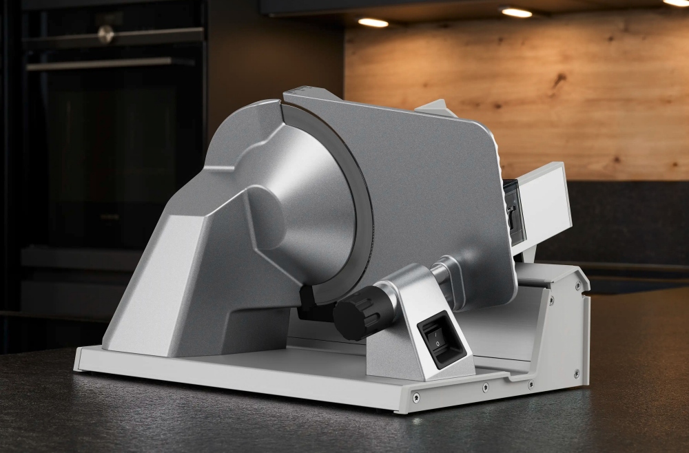 Krajalnica Lupo 13 , to pierwszy produkt z linii “profesjonalnej” firmy Ritter. Mocny silnik kondensatorowy ze ślimakowym przekazaniem napędu, daje dużą wydajność, a jednocześnie pracuje bardzo cicho. Krajalnica wyposażona jest w bardzo ostry nóż o średnicy 19 cm, pozwalający na krojenie szczególnie cienkich plastrów. Lekko przesuwające w się sanie z podawanym produktem, zapewniają wysoki komfort obsługi urządzenia. Bardzo duży zakres przesuwu sań umożliwia krojenie szczególnie dużych produktów. Urządzenie pozwala się łatwo czyścić, elementy maszyny są łatwo dostępne i można je szybko zdemontować.