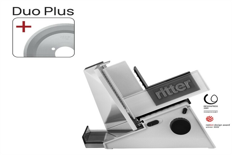 Wersja DUO PLUS zawiera dodatkowo nóż gładki do krojenia szynki Elektryczna krajalnica amido3 urzekający design i praktyczne funkcje Wysokiej jakości materiały i doskonałe wykończenie gwarantują długą żywotność Contura3 – idealne urządzenie dla każdego, kto łączy w sobie klasyczny design i technologię