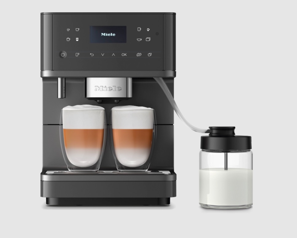 Wolnostojący ekspres do kawy z WiFiConn@ct, wysokiej jakości pojemnikiem na mleko i różnymi specj. kawowymi.