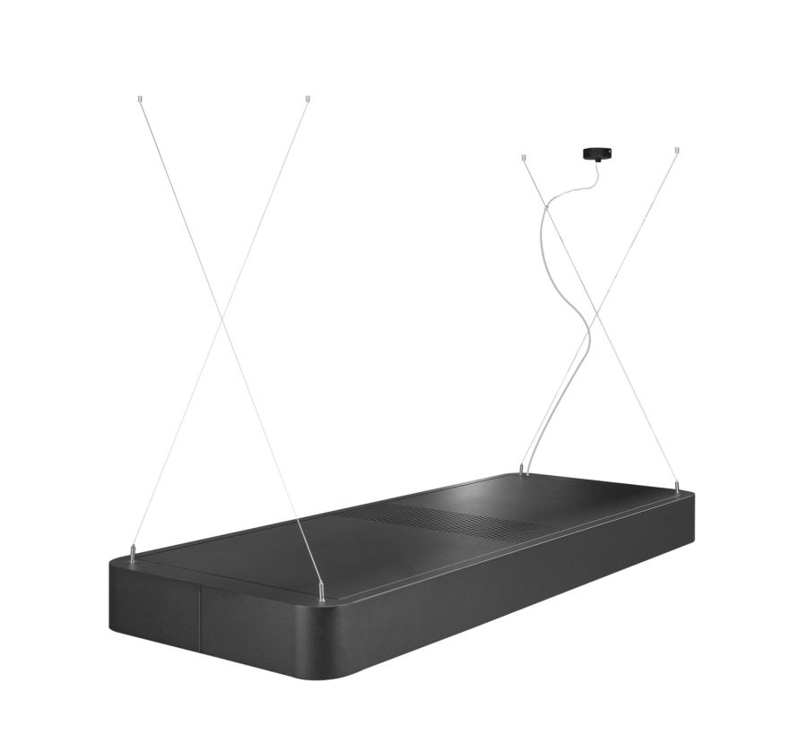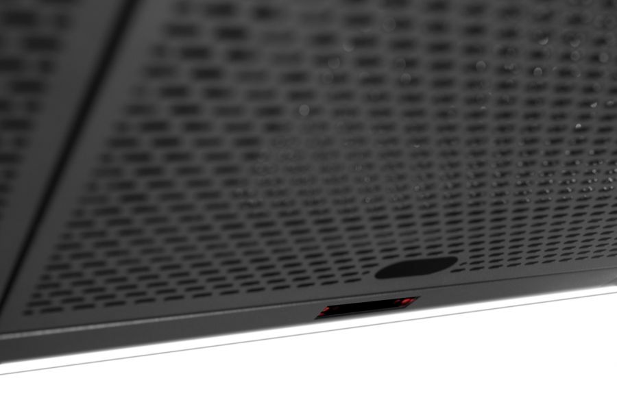 Czołowym podzespołem pochłaniacza jest oczywiście turbina o wysokiej wydajności. Do tego energooszczędne LEDy efektywnie doświetlające płytę. Temperatura barwowa oświetlenia wynosi 4000K, zbliżona do światła dziennego, co za tym idzie, wiernie odwzoruje kolorystykę przygotowywanych potraw. Okapem sterujemy gestami, co jeszcze bardziej upraszcza obsługę i zwiększa komfort pracy w kuchni. Całość wykonana jest z solidnej stali i wykończona matową czernią. Dostępne szerokości to bagatela 130 i 160 cm, co podkreśla klasę urządzenia i jego przynależność do kategorii okapów architektonicznych.